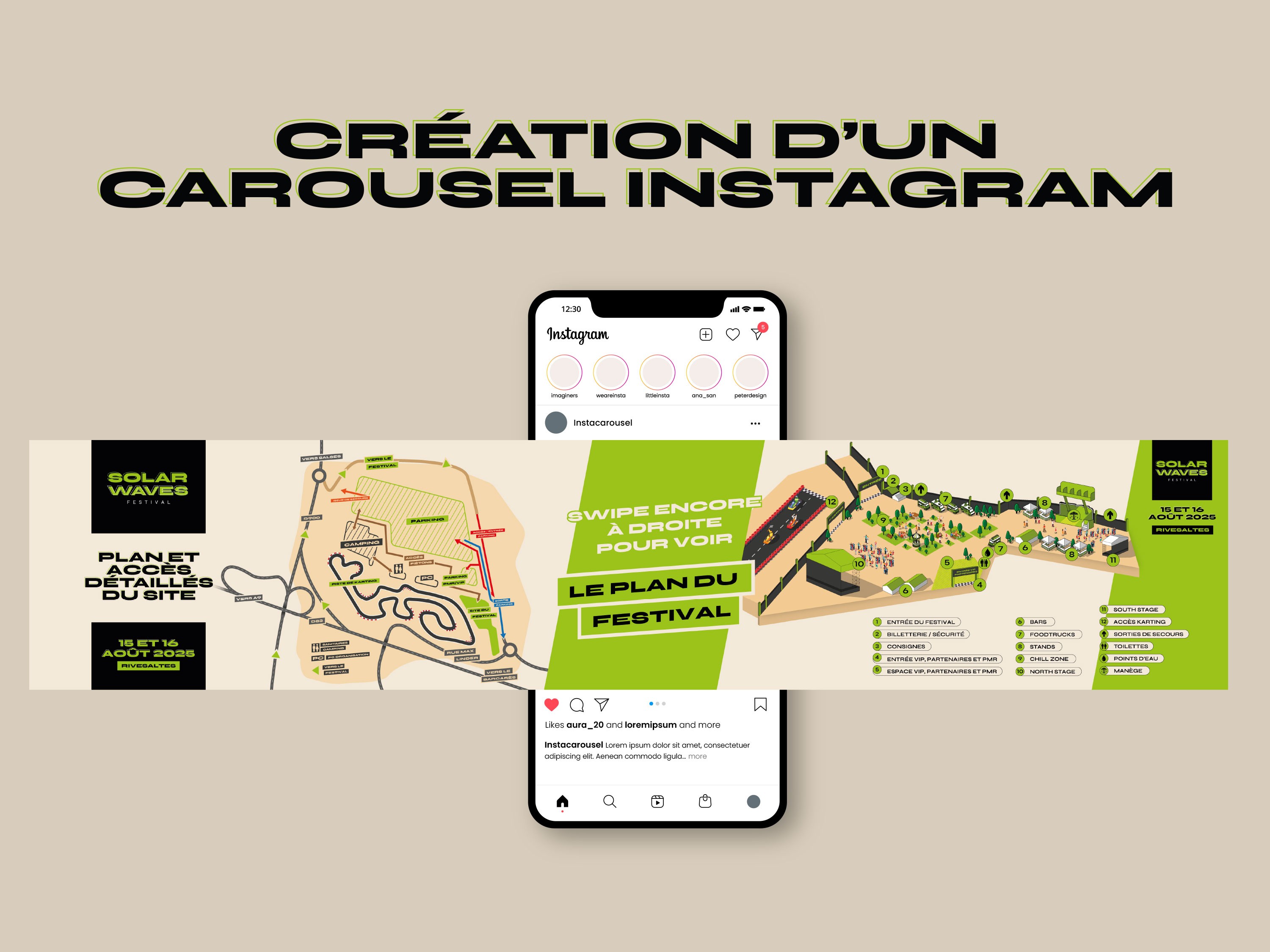 Le projet a permis de créer un ensemble de supports visuels cohérents, incluant plans du site, signalétique et contenus pour les réseaux sociaux, pensés pour informer rapidement et guider efficacement les participants.